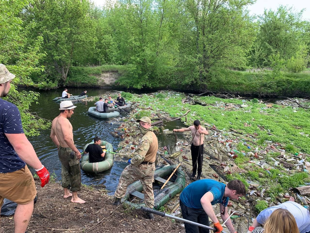 Первым начал поднимать тревогу эковолонтер Артем Приходько. Он сделал публикации в местных социальных сетях с призывом объединяться и спасать реку. Волонтерами оперативно были найдены крупные пакеты для сортировки мусора. Также нашлась компания, которая согласилась сотрудничать с неравнодушными жителями и предоставила им лодки. От общины волонтерам выделили трактор, машину и всех рабочих коммунального предприятия. Не обошлось и без помощи водолазов.
