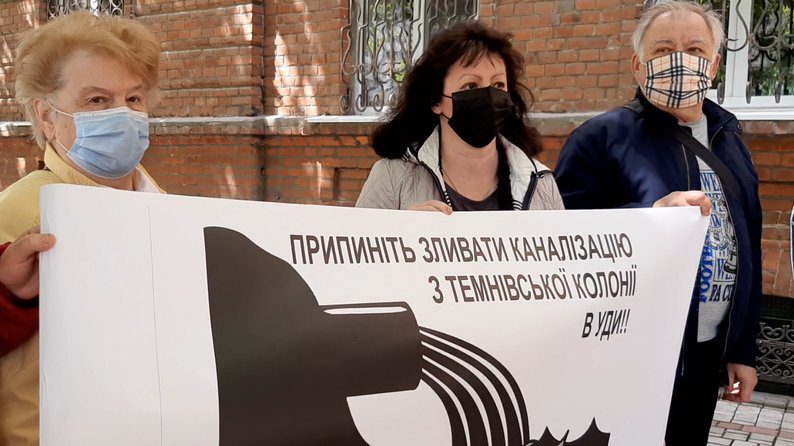 Также представители харьковских общин обвиняли в загрязнении реки пластиком Темновскую исправительную колонию. Мол на ней занимаются переработкой пластиковых бутылок и, скорее всего, что-то делают не качественно. Инициативная группа пригласила в колонию экологов, взявших пробы воды. Ими было установлено, что цех Темновской исправительной колонии действительно совершал преступление в отношении реки. Много лет назад неизвестные повредили трубу, соединяющую насосную станцию и очистные сооружения, после чего возникли проблемы с канализацией. Экоинспекция выписала колонии штраф в полторы тысячи гривен за засор и обязала расчистить реку. К сожалению, для руководства темновской колонии это не стало уроком. Ситуация не поменялась. Тогда жители поселков снова начали действовать.