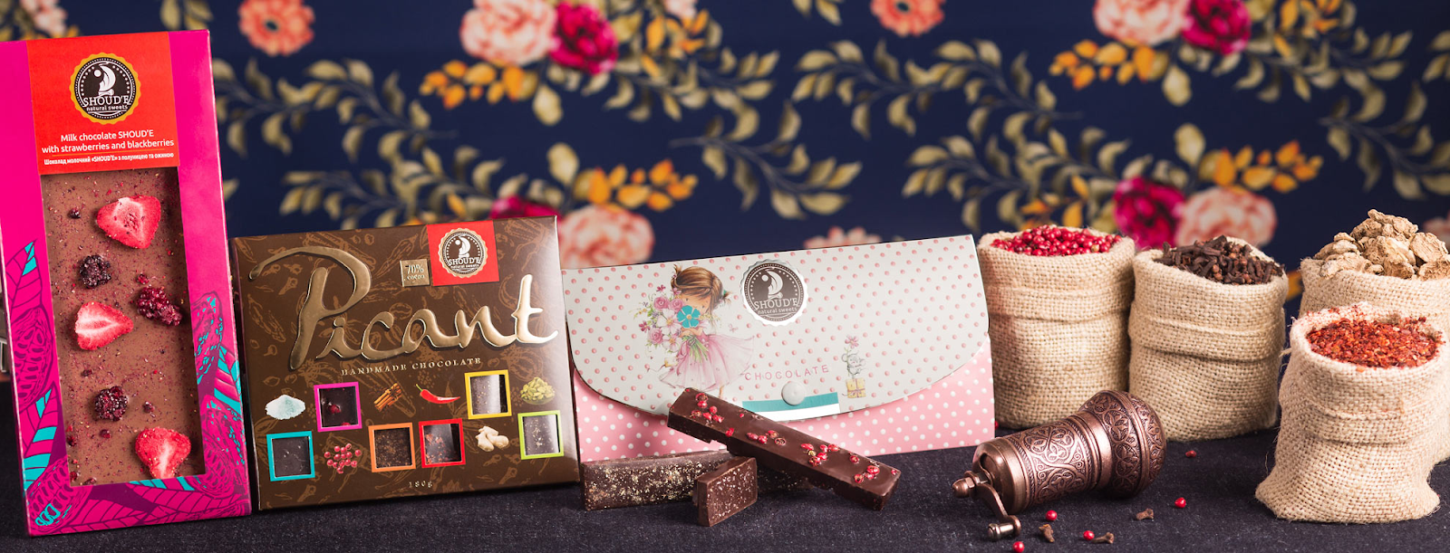• Шоколад. Под брендом “Shoud’e” выпускаются шоколадные наборы, шоколадки весом 100 г и небольшие батончики весом 28 г. В продаже есть молочный и черный шоколад. В качестве начинок используются разные виды орехов, ягоды, фрукты, натуральные цукаты. Шоколатье фабрики разрабатывают оригинальный дизайн плиток шоколада и изготавливают целые подарочные наборы.